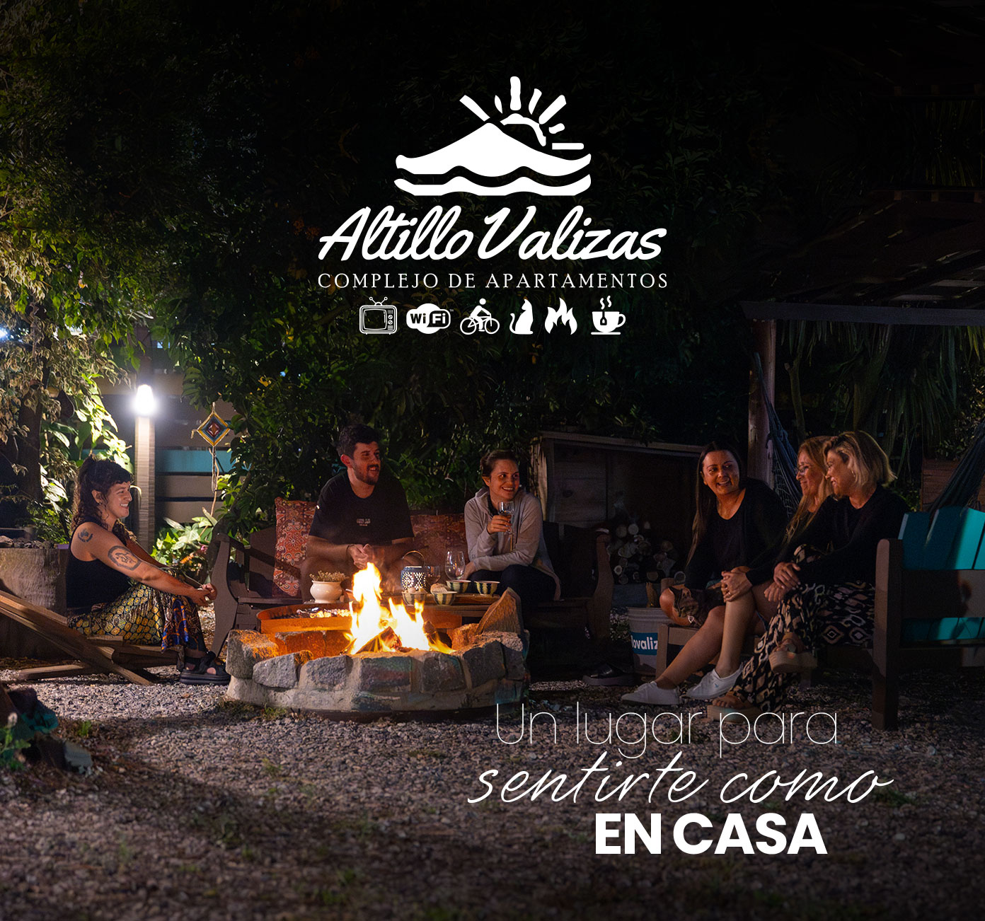 El patio central, de concepto abierto, envuelve a los aptos con sus colores y naturaleza. Así mismo, cada apto cuenta con su espacio individual así como el acceso a nuestro espacio "La Fogosa" con una gran Barbacoa de uso compartido y un fogón de piedra bajo las estrellas del hermoso cielo de Valizas.