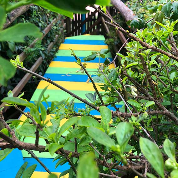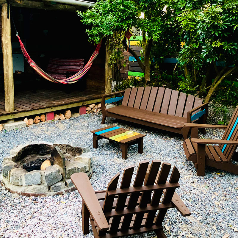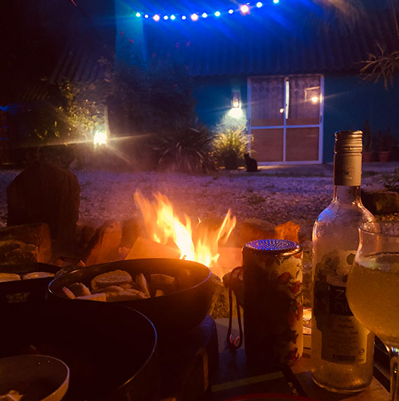 El patio central, de concepto abierto, envuelve a los aptos con sus colores y naturaleza. Así mismo, cada apto cuenta con su espacio individual así como el acceso a nuestro espacio "La Fogosa" con una gran Barbacoa de uso compartido y un fogón de piedra bajo las estrellas del hermoso cielo de Valizas.